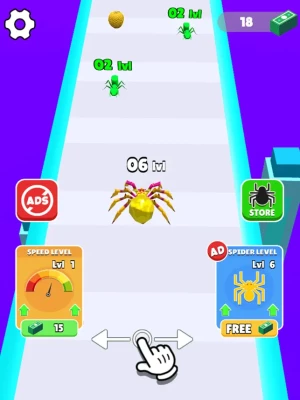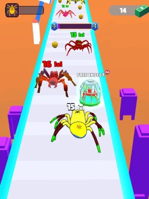 Welcome to Spider & Insect Evolution Run, where you embark on an exhilarating journey through vibrant landscapes filled with dynamic challenges and opportunities. Guide your insect through strategic evolution, consuming smaller insects and obstacles to evolve and dominate the track.