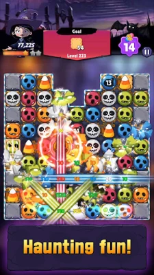 Join the Halloween witch and start your spooky match-3 adventure today!
