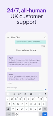 • With 24/7 in-app support from real humans in the UK, we're always here to help