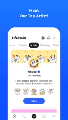 - Follow your favorite creators or artists to get new WA stickers instantly