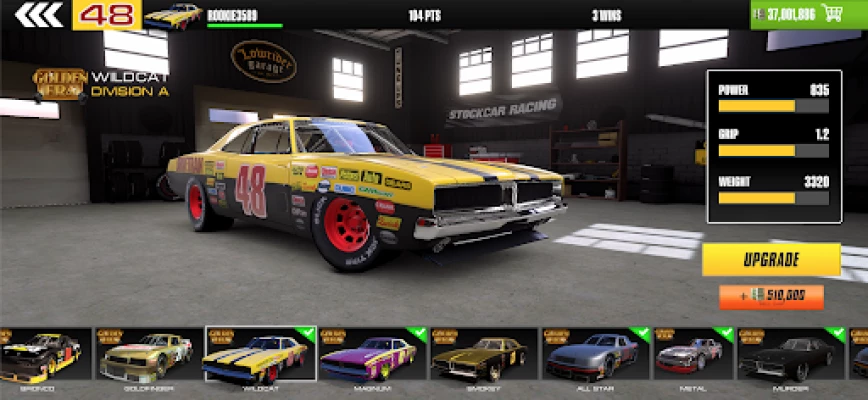 Enhance your vehicle's performance with race upgrades for engine, tires, and chassis.