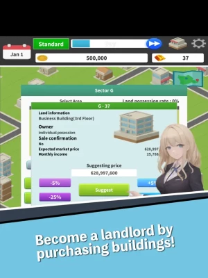 Real Estate - Invest in 800 plots of land, build buildings, and create stable income and your own world.