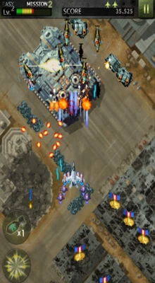 Bomb button touch: Fire a bomb to block enemy fire for some time.