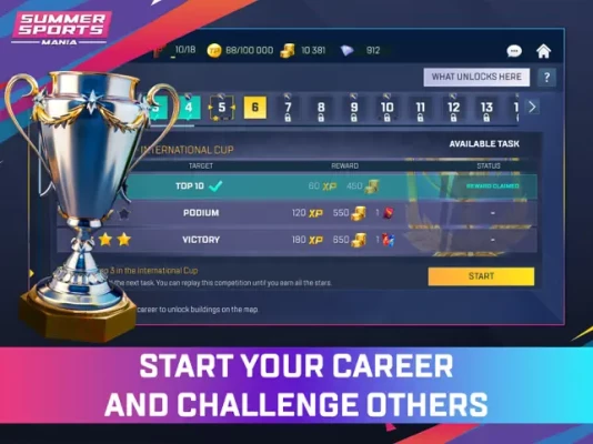 Join the global community of athletes in Summer Sports Mania and experience the thrill of international competition. With realistic simulations, diverse sports events, and an engaging career mode, this game is perfect for sports enthusiasts and gamers alike. Download now and start your journey to athletic greatness!