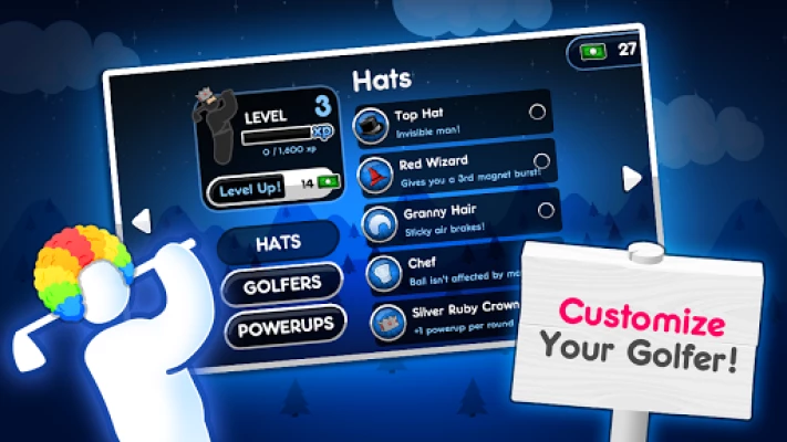 Customizable Characters. Stand out from the crowd with new unlock-able characters and even more valuable hats. Each hat contains a unique ability and some are more rare than others. Can you collect them all and become a certified Super Stickman Golf Legend?