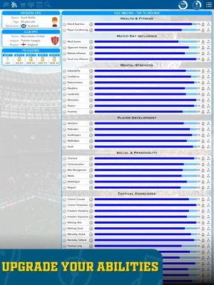 Aside from developing the club, you should develop you own character. Use experience points to upgrade your own personal abilities and become the best manager you can be. Perhaps you focus on becoming a great man-manager or specialise in a specific style of football? More importantly, as you improve, do you stay loyal to your current club or move on to pastures new? After all, that new club could have a much bigger transfer budget!