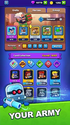 - Heroes and Arena: Collect and upgrade heroes to triumph in strategic battles on the arena.