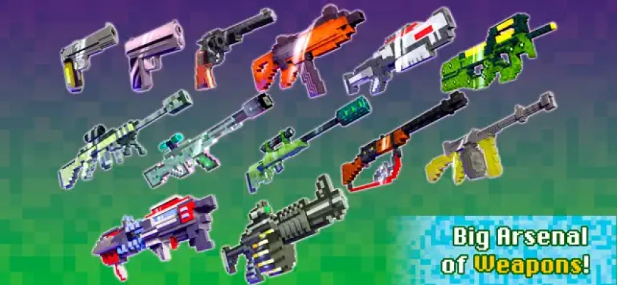 - Weapon Collection: Collect a stash of blocky, pixelated weapons and show them who’s the boss. Axes, pistols, rifles, shotguns, machine guns, grenade launchers, a flamethrower and more.