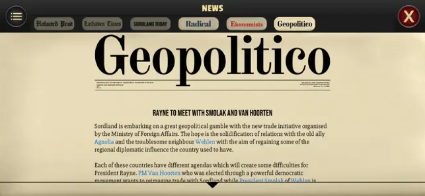 * “The nuanced dilemmas it presents, set against a detailed and convincing backdrop of mid-20th century history in a fictional world, make it one of the most fascinating political strategy games of the past several years.” - VICE