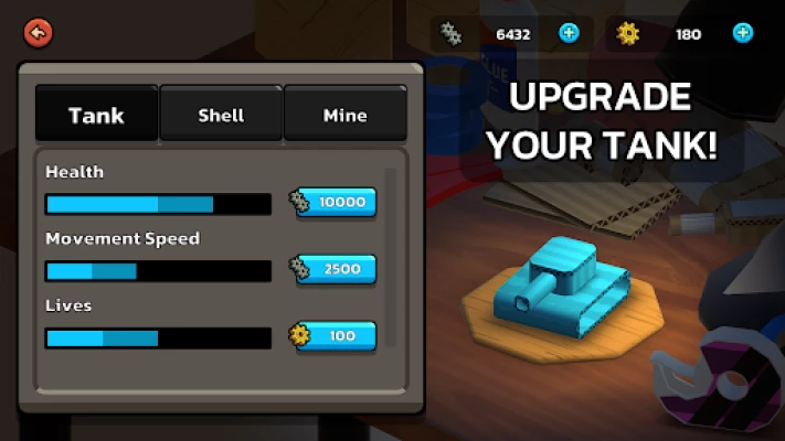 - Upgrade your tank's firepower, armor, and speed to gain an edge over increasingly challenging adversaries.