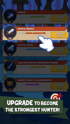 Tap on screen to hunt and slay monsters. Collect gold, upgrade skills and gather collection of unique weapon: axes, swords, magical wands and many other epic magical weapons awaits!