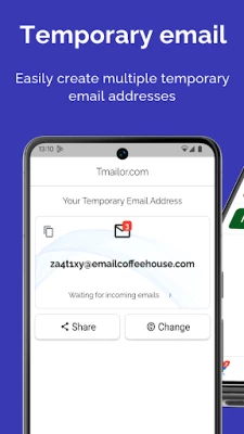This temp mail app instantly provides a temporary email address without needing personal information. Use our free temp mail service to sign up on other websites, apps, or services without using an actual email. Permanently use the generated email address without cancellation. Restore the temp mail address with a token.