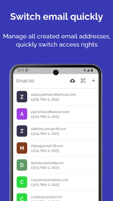• Email address List: Manage all the temp mail addresses provided by the temp mail app.