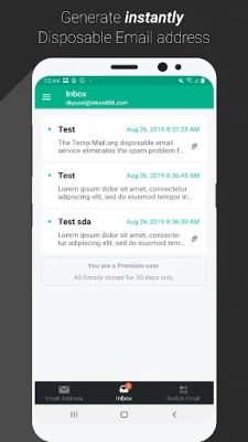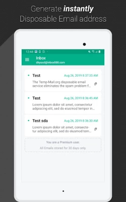 Using Temp-Mail app, you can instantly generate disposable temporary email address and immediately receive emails, including photos or any other attachments.