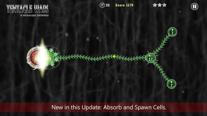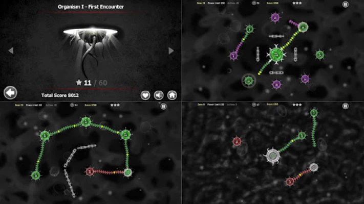 You can cure the organism by capturing enemy cells. To do this, draw a line between green antibody and red enemy cells. This will launch DNA tentacles which drain energy from enemy cell cores and eventually overtake them. Keep an eye on your energy supply and boost your attacks by cutting the tentacles. Capture all enemy cells to secure a zone. Cure all zones and the life form will survive…