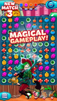 Apprentice Witch puzzle match-3 Halloween puzzle game brew magic potions & charms in this adventure of sorcery and witchcraft with amazing graphic that come with a Halloween twist