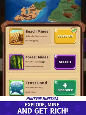 -Blast and Mine: Use your bombs to uncover minerals and discover rare resources. Every explosion can bring a big reward!