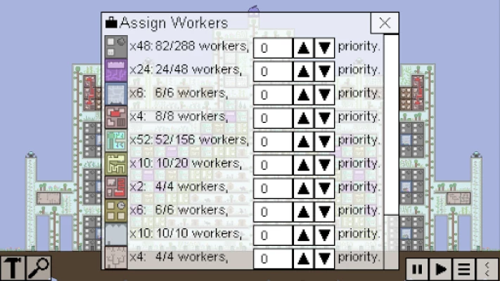 It's 2142, and earth is a wasteland. You built a space ship, but now your food is running out. Fortunately, you see a world just in time. It is a bit small, but certainly better than nothing. You build some farms and houses, and fulfill the basic needs of your citizens. Then, it's time to build the true city of the future! Research advanced technology and make your city grow to a huge metropolis. When your tiny world gets too small, fly to other worlds with space ships, or even build teleporters.