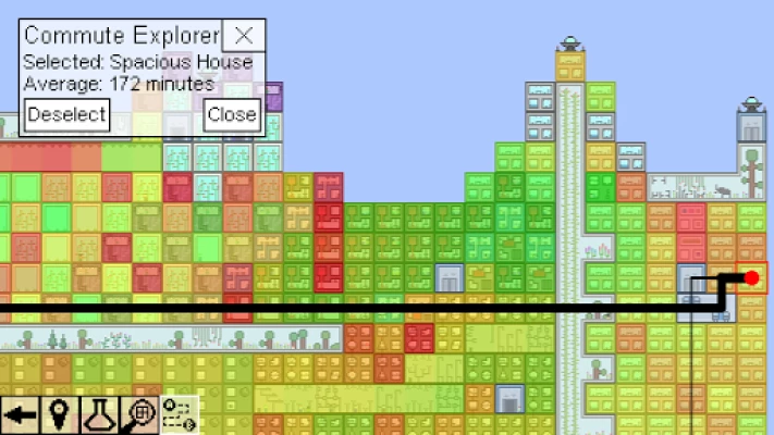 After you've built a huge city, sit back and see it in action for a while. It's like watching an ant colony! You can also follow any citizen to make this even more fun. Find the person with the craziest commute, or discover hidden details like a stargazer. 🔭
