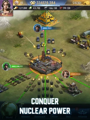 Develop strategies, employ military tactics, join alliances, upgrade energy sources, and deploy chemical weapons to defend your base effectively. Strategize to conquer bases with various weapons, including missiles, and command your army to destroy enemy nations and expand your territory.