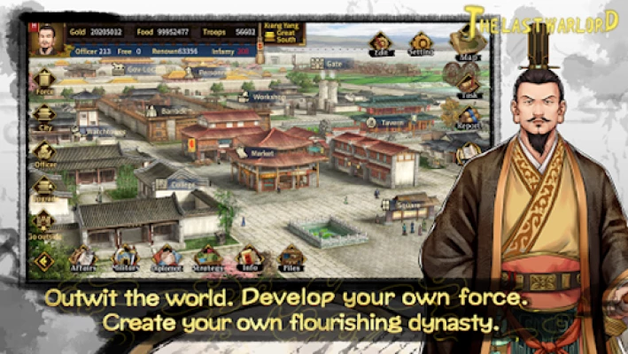 The Last Warlord is a turn-based lord-playing strategy game developed by the Chengdu Longyou Studio. The studio created this game world set in the period of the Three Kingdoms mainly based on people's opinions on other games set in that period. The game is very detailed in depicting the differences between various cities and also the abilities and features of the military officers. The game also applies an appealing battle system in which weather, landforms, and many other factors will influence the result of each battle.