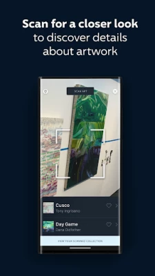 • Place the art: Choose from hundreds of pieces in the collection to see it anywhere—from your living room wall to your office space. • Favorite the art: Start your own collection when you ‘heart’ your favorite pieces, including photography, installations, recent acquisitions and more! • Scan the art: Were you struck by a piece on campus? Scan it and get real-time information on the artist, background, and more.