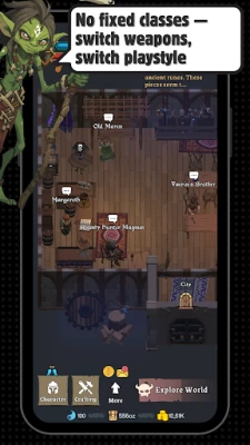 Forget about rigid character classes. In Tidle, the weapon you hold defines your combat style. Want to be a tank? Equip a shield. Prefer ranged combat? Grab a bow. You can switch weapons at any time and experiment with different playstyles. Develop your abilities in the talent tree and create your own unique builds.