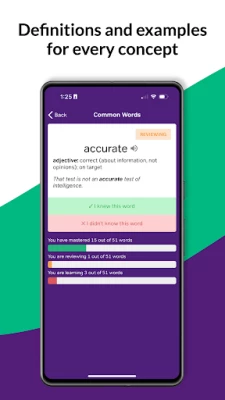 Academic research has found that memories are formed by repeated exposure to new information, so Magoosh’s flashcard app uses a spaced repetition system. Words you are learning will reappear frequently (occurring less frequently the better you know them) and words you already know won’t be repeated. The TOEFL word list is also culled to only 600 so that you don't waste time learning unimportant words.