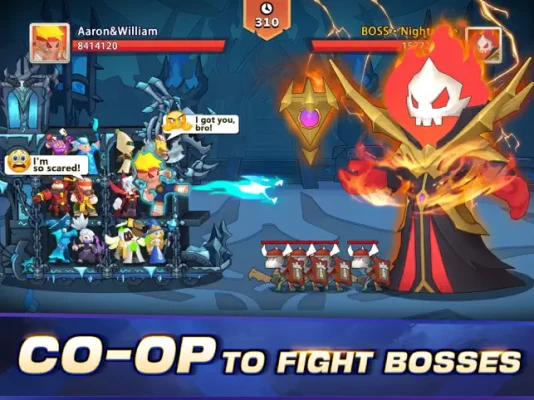 Challenge 300+ waves of monsters and powerful unique bosses in Co-op and Exhibition modes! In Co-op, you can invite your friends to join your team and plan the best strategy together! Each boss has unique characteristics and abilities. Find the optimal path to defeat them and you can get an s-tier rewards, including a Wisp hero and unique Siege Tower skin!