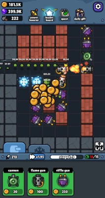 🔫 Diverse Turret Arsenal Unlock and upgrade powerful towers like Cannons, Flame Guns, and Rifle Guns. Each has unique abilities and upgrade paths to suit your strategy.