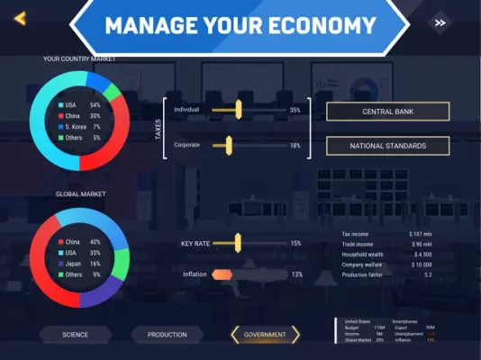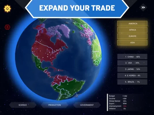 Trade Wars is not only a realistic economic simulator, but also an exciting global strategy game. Capture the markets of all countries of the world with the goods of your country, winning the competition! At the moment, 9 industries are available to you, within which you can become a world leader. Don't get bankrupt, it's a trade war!