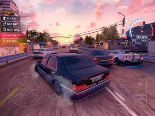 The races have different modes with unique passing mechanics. The gamer can freely ride on the roads and admire the surroundings or take part in dynamic time trials. There is a function to switch the time of day and change the weather, which allows you to practice driving in more difficult conditions. The camera displays the surrounding space from several angles. The player will see urban five-story buildings, village houses, stops and other objects.