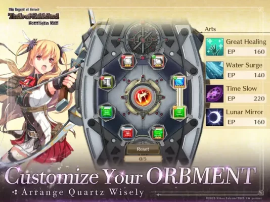 Utilize the classic Orbment system from the renowned "Trails" series to tailor your skills with various Master Quartz. Create personalized effects that suit your playstyle!