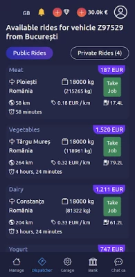 Access the transport exchange – Become a strategic player in the freight market. Broker transport jobs for other players and earn commissions.
