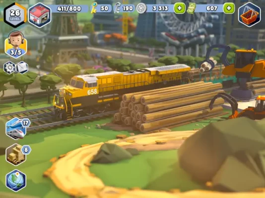 Collect vehicles, deliver cargo, finish contracts and even master city building to become ultimate transport tycoon! Find the best strategy and your cargo will flood every train station, airport and dock in every port city in the world. On land, sea and in the air, your transport empire will have no bounds. Collect trains, trucks, ships and planes to complete transport contracts on ever-changing map full of interesting people and places. Conquer every seaport with your cargo ships, satisfy your transport fever and make your pocket city flourish. It doesn't matter if you are helping with repairing bridges, protecting environment, supplying cool theme park or building amazing space center, you will succeed!