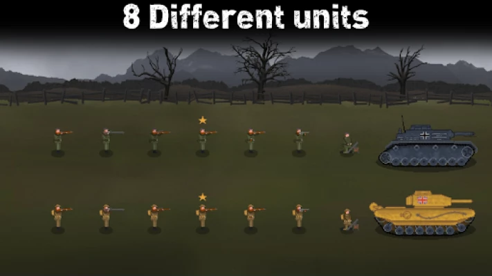 - 26 campaign levels - Upgrade system - Freeplay mode - Local multiplayer - 3 Difficulty settings - 10 Units and abilities - 40 different animations for each soldier - Unique sound effects and immersive ambience