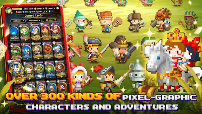 - Collect over 300 pixel art heroes! One of the best card collecting RPG games!