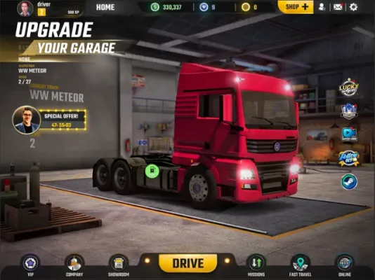As you push the limits of your skills behind the wheel and drive your truck, test your company management at the same time to show the competitive world that you didn't get to where you are by accident. Control your character, hire important names in the industry, grow your company and dominate the roads as a truck driver.