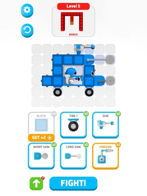 - Various modules to build your robot truck: blocks, wheels and tracks, fire gun, shield, saws, etc.
