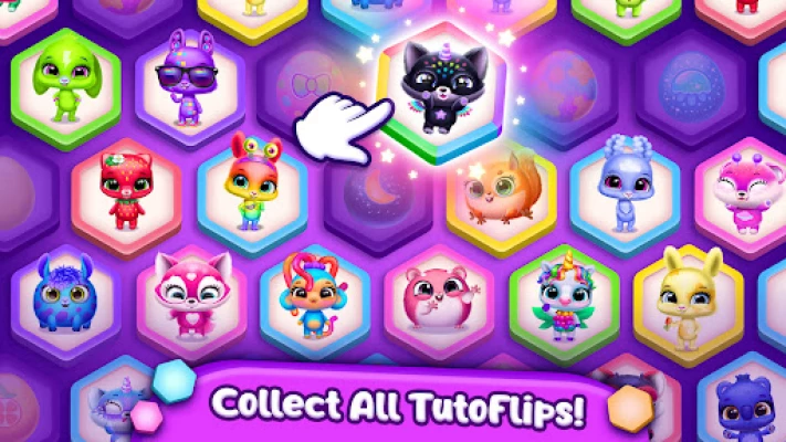 All your favorite TutoTOONS characters in one game! What could be more exciting? Join the TutoFlips - Pet Doll House saga, collect every unique pet & blast hex pieces! Build your pet collection & enjoy the thrill of hex match games!
