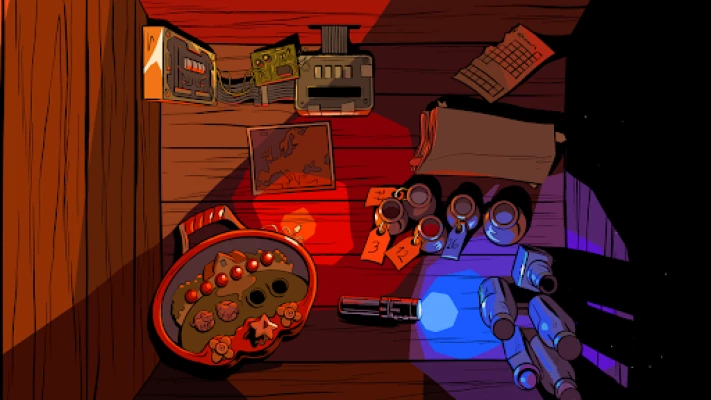 Unboxing the Cryptic Killer features hand-illustrated environments that are inspired by noir novels.