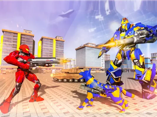 Are you ready for futuristic transform wars in transforming robot games with police dog rescue cities and eradicating criminal activities and evil robots fighting in cop games and police games? You will enjoy smooth controls over the robot while playing. You have played multiple Robot Police Dog games but real robot car transforms will give you real experience when you transform a robot into a flying jet, dog, and car in Robot fighting games 3d 2021.