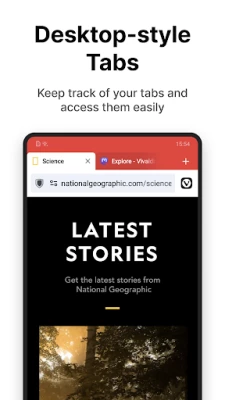 Vivaldi is also available on Windows, Mac, and Linux! Pick up where you left off by syncing data across devices. Open tabs, saved logins, Bookmarks and Notes seamlessly sync to all your devices using end-to-end encryption and can be further secured by an encryption password.