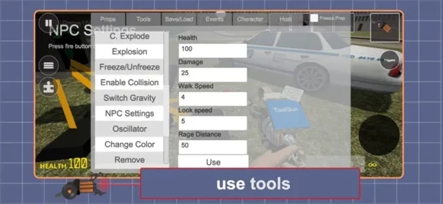 - Play with friends in this fun sandbox; - Build with 700+ props; - Use tools: Weld, Thrusters, Spawner, Paint Tool, Explosion Tool, Scale Tool and more.. - Drive vehicles: Bus, cars and helicopters.