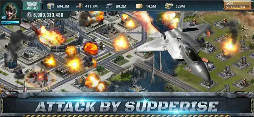 - Resources management (electricity, oil, iron, food, cash, and gold) to build your buildings, train your troops, craft war machines and upgrade them.