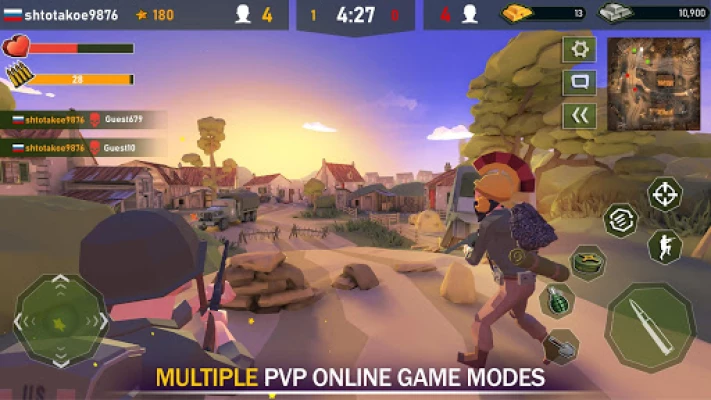 Feel the power of PvP battles with players from all over the world. Challenge your skills in team battles on the WW2. Advance in rank your fighter, upgrade weapons, and armor to become the strongest army man!