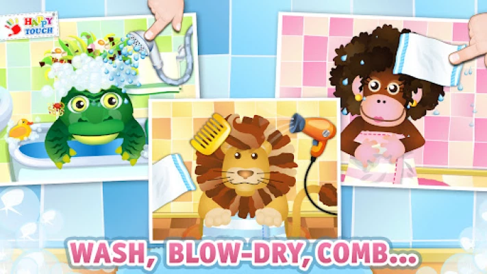 Phew, your hair has seen better days. And washing hair alone can be really boring. It's so much nicer to wash your hair with your cute animal friends!