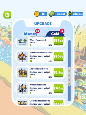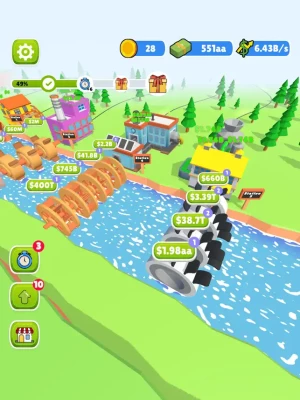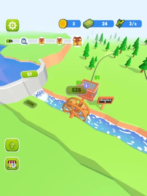 Build factories and upgrade water wheels to generate more power!