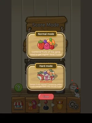 Score mode, where you can earn many points Time mode, where you can quickly make a watermelon Normal mode, where you can make fruits Difficulty mode, where rotten fruits appear Try combining fruits in various modes!