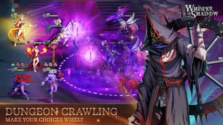 Whisper of Shadow is a roguelike strategy idle game. In Whisper of Shadow, you will march through dangerous dungeons, face random events, summon heroes and fight against devils.